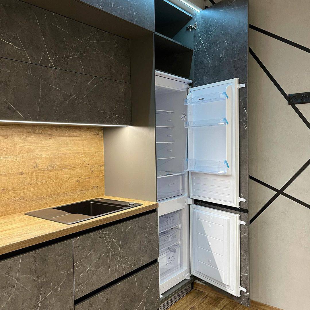 П-образная кухня с пластиковыми фасадами с ручкой  gola-профиль